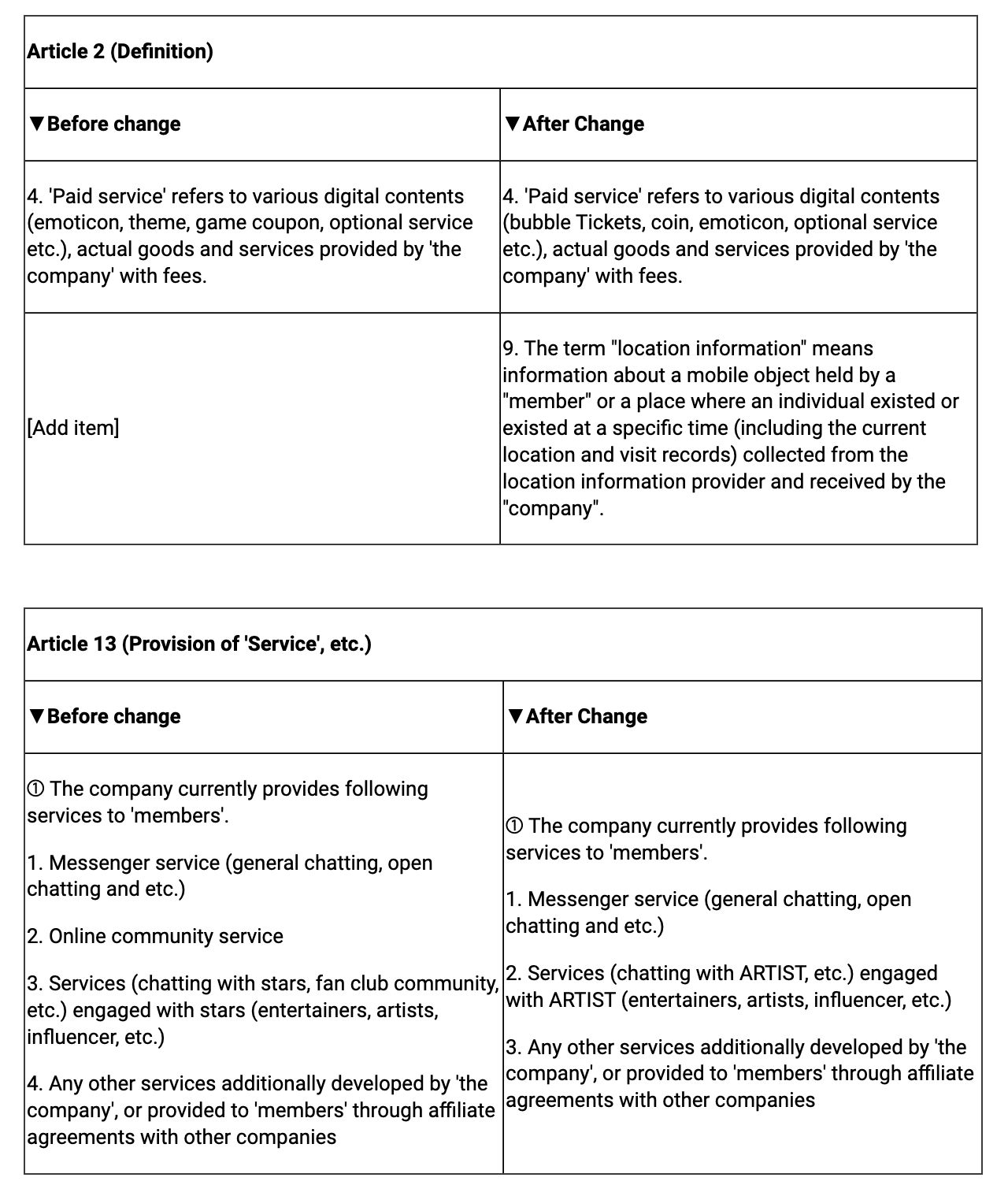 In addition, we would like to inform you that Lysn's Terms of Service will be revised as follows. Please be reminded of the changes when using the services.