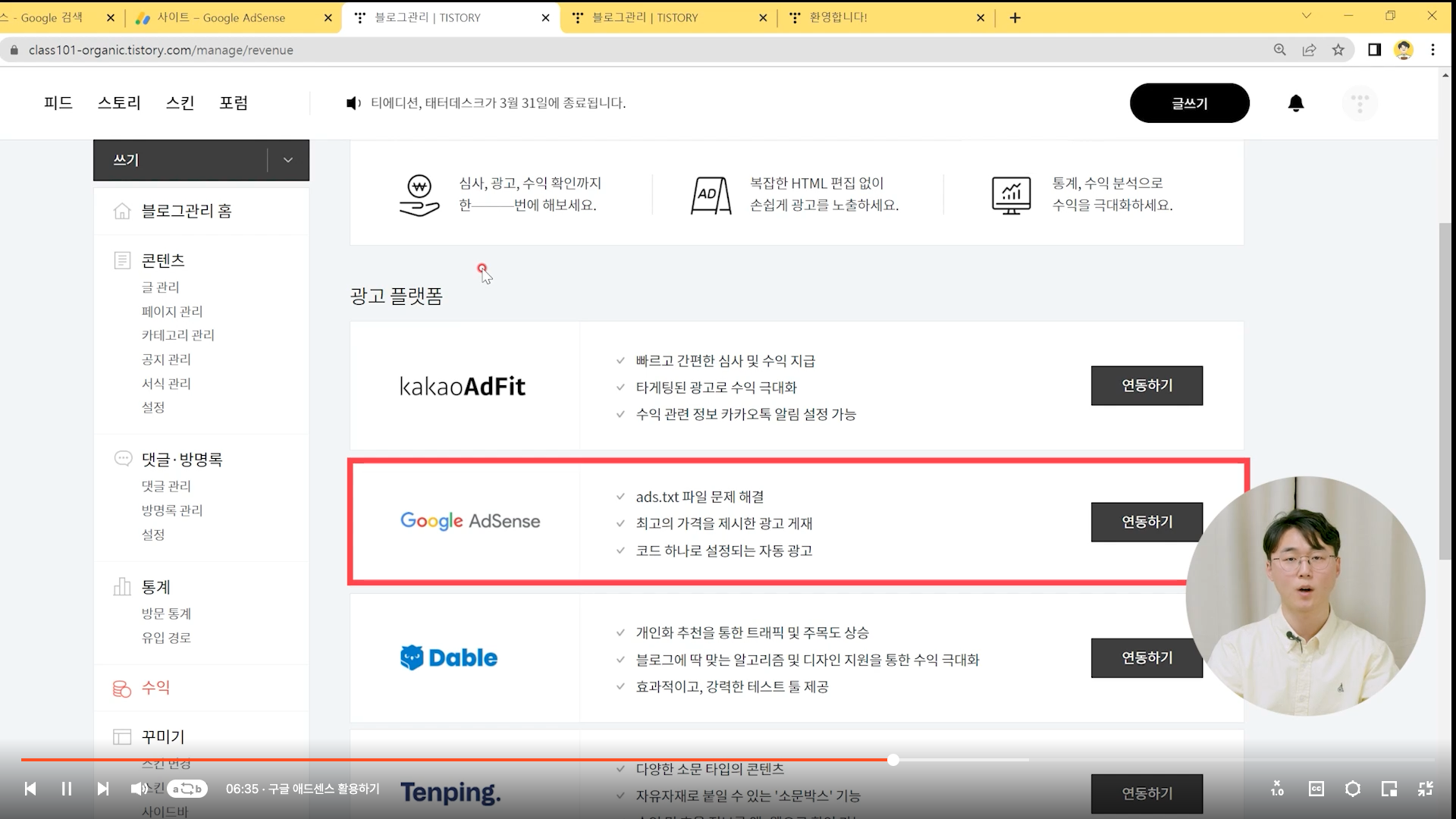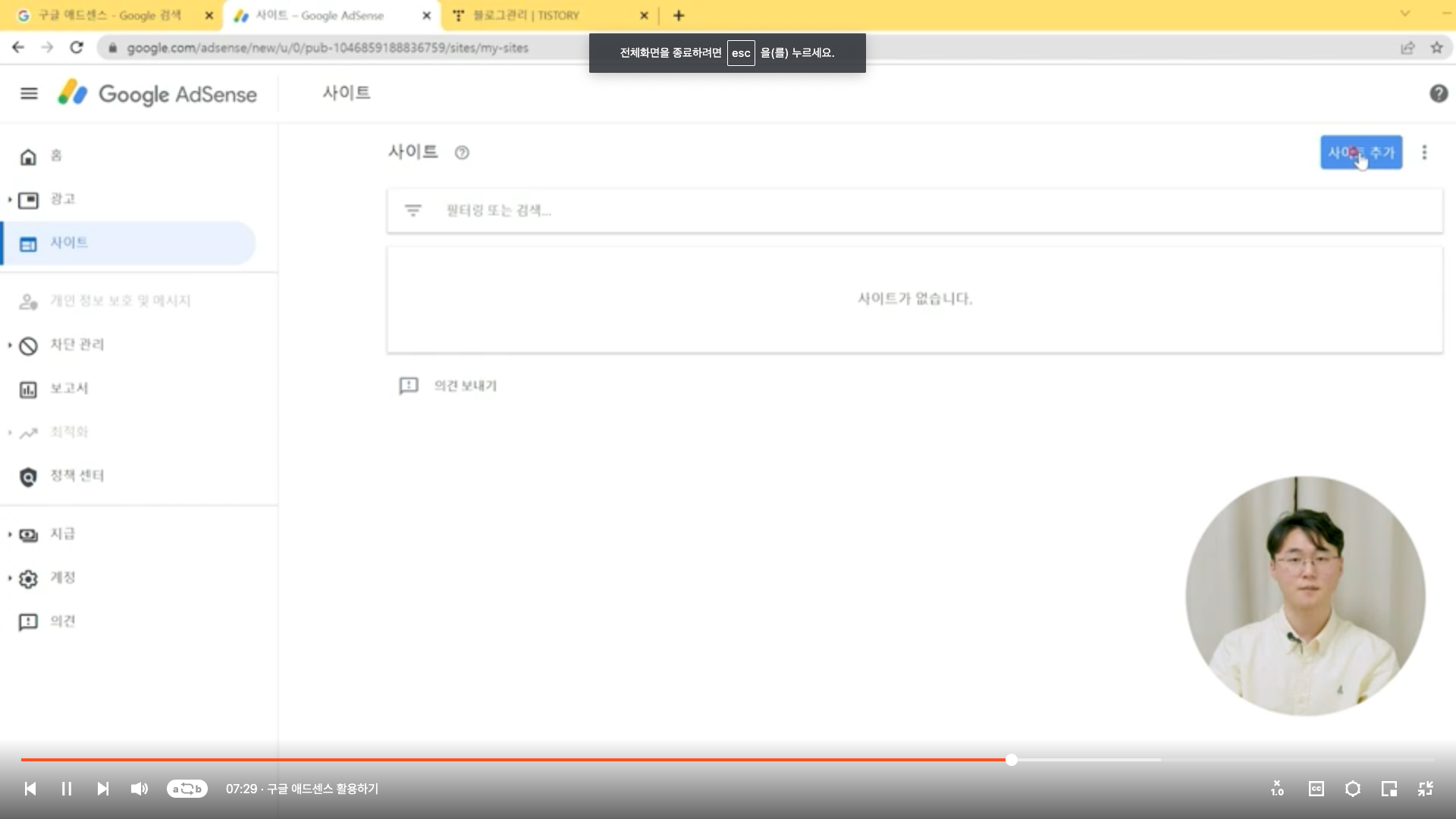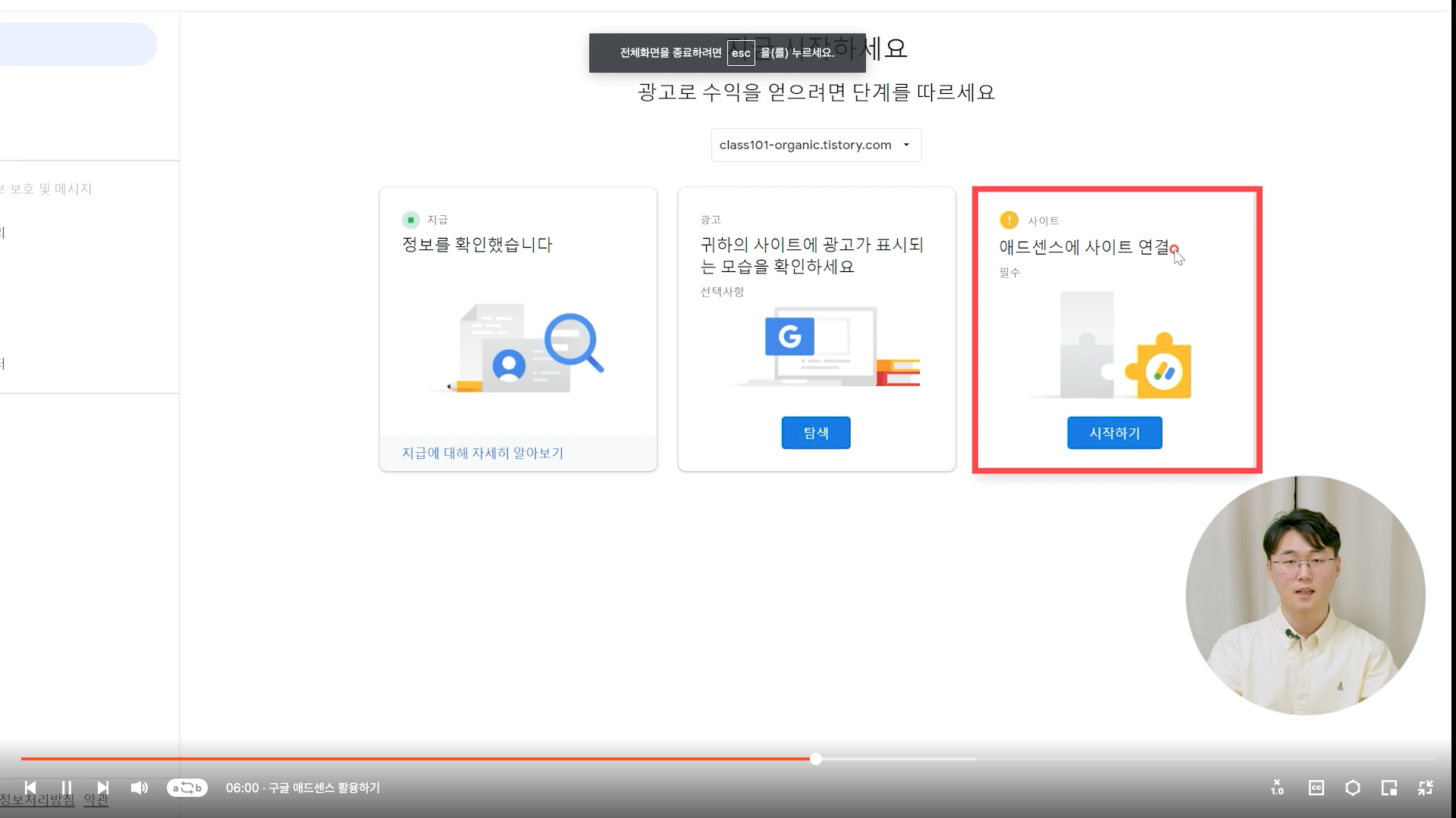 4. 애드센스 사이트 연결 클릭 후, 티스토리 이동