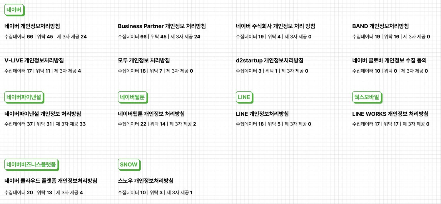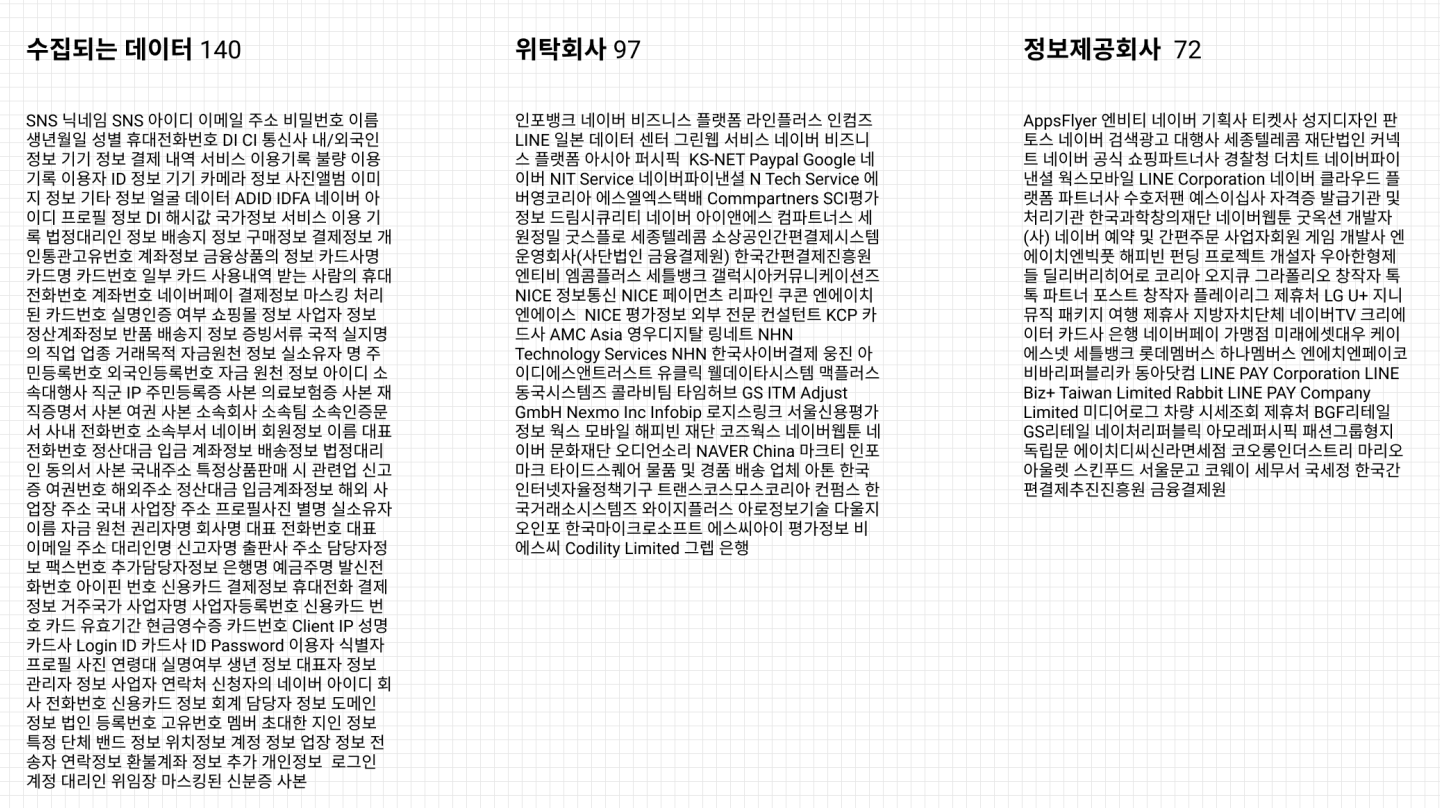 | 수집되는 데이터 | 위탁회사 | 정보제공회사 |