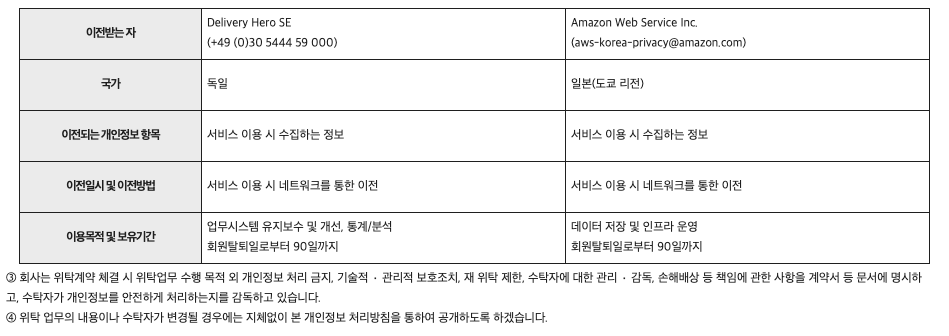 * 요기요 개인정보처리 약관을 보면, 정보가 독일로 이관된다.