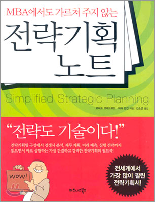- 비전은 사람에게 나온다. 전략을 문서화만 하면 큰 도움이 되지 않는다. 훌륭한 전략기획은 하나의 경영 도구여야 한다. 전략은 커다란 비전을 담고 있으며, 그 비전을 무언가 유용한 것으로 바꾸어 놓는 역할을 해야 한다.